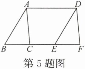 5. 已知面积为 5 的△ABC 沿 BC 方向平移至△DEF 的位置,平移的距离是边 BC 长的两倍,那么图中的四边形 ACED 的面积为多少?