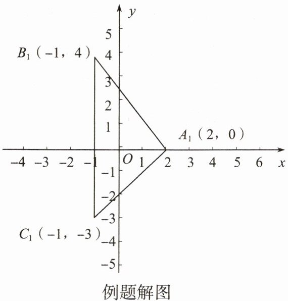 解:(1) 如图,$ A_1(2,0) $,$ B_1(-1,4) $,$ C_1(-1,-3) $。
