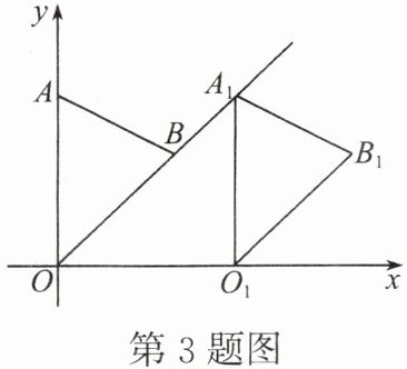 3. 如图,在平面直角坐标系中,点 $ A $ 的坐标为 $ (0,4) $,$ \triangle OAB $ 沿 $ x $ 轴向右平移后得到 $ \triangle O_1A_1B_1 $。若点 $ A $ 的对应点 $ A_1 $ 是直线 $ y = x $ 上的一点,则点 $ B $ 与其对应点 $ B_1 $ 的距离为