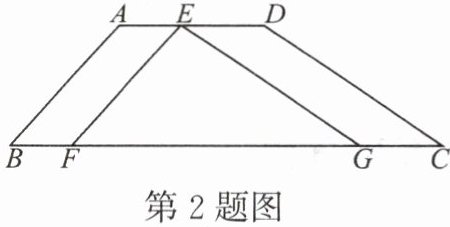 2. 如图所示,在四边形 $ ABCD $ 中,$ AD // BC $,$ \angle B + \angle C = 90^{\circ} $。点 $ E $ 为 $ AD $ 上任意一点,将 $ AB $ 向右平移,使点 $ A $ 与点 $ E $ 重合,交 $ BC $ 于点 $ F $,再将 $ DC $ 向左平移,使点 $ D $ 与点 $ E $ 重合,交 $ BC $ 于点 $ G $。
