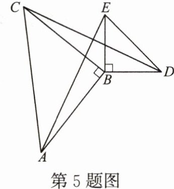 5. 如图,△ABC与△BDE都是等腰直角三角形,∠ABC=∠DBE=90°。图中哪个三角形可以看作是由另一个三角形按逆时针方向旋转得到的?指出旋转中心和旋转角。
