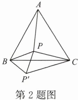 2. 如图所示,已知P为等边三角形内一点,且BP=3,PC=4,将BP绕点B顺时针旋转60°至BP'的位置。