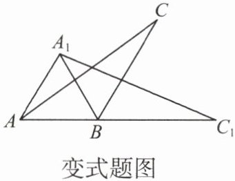 变式 如图,将一个钝角三角形 $ABC$(其中 $\angle ABC = 120^{\circ}$)绕点 $B$ 按顺时针方向旋转得到 $\triangle A_1BC_1$,使得点 $C$ 落在 $AB$ 的延长线上的点 $C_1$ 处,连接 $AA_1$。