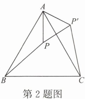 2. 如图,已知等边三角形 $ABC$,将 $\triangle ABP$ 绕点 $A$ 按逆时针方向旋转后与 $\triangle ACP'$ 重合。若 $AP = 6$,则 $PP' =$