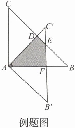 例题 如图,$\triangle ABC$ 绕点 $A$ 按顺时针方向旋转 $45^{\circ}$ 得到 $\triangle AB'C'$,$\angle BAC = 90^{\circ}$,$AB = AC = \sqrt{2}$,求图中阴影部分的面积。