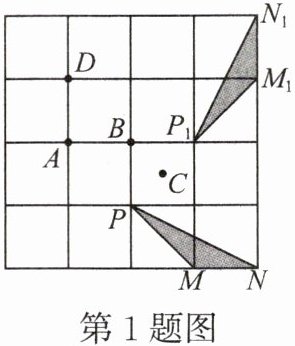 1. 在如图所示的 $4 × 4$ 的正方形网格中,$\triangle MNP$ 绕某点旋转一定的角度,得到 $\triangle M_1N_1P_1$,则其旋转中心可能是点