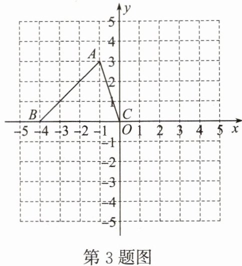 3. 如图,平面直角坐标系内,小正方形网格的边长为 $1$ 个单位长度,$\triangle ABC$ 的三个顶点的坐标分别为 $A(-1, 3)$,$B(-4, 0)$,$C(0, 0)$。