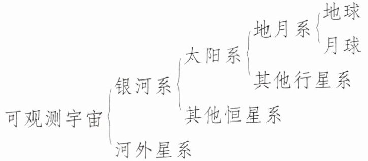 ① 可观测宇宙 ② 银河系 ③ 太阳系 ④ 地月系