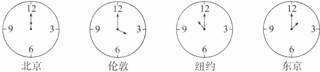4. 小明在某酒店大堂看到四个城市的时钟(下图)在同一时刻时间不同,原因是(