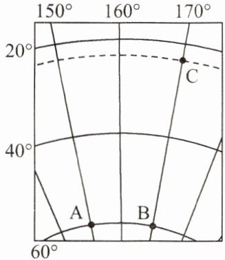 )A.A 地经纬度是(60°S,150°W)