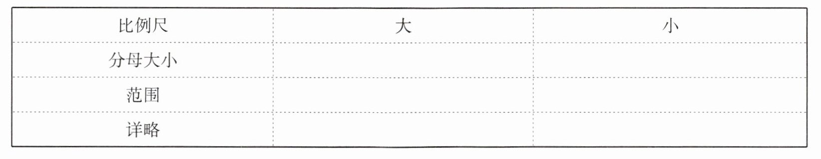 4. 判断比例尺的大小与表示范围、内容的关系: