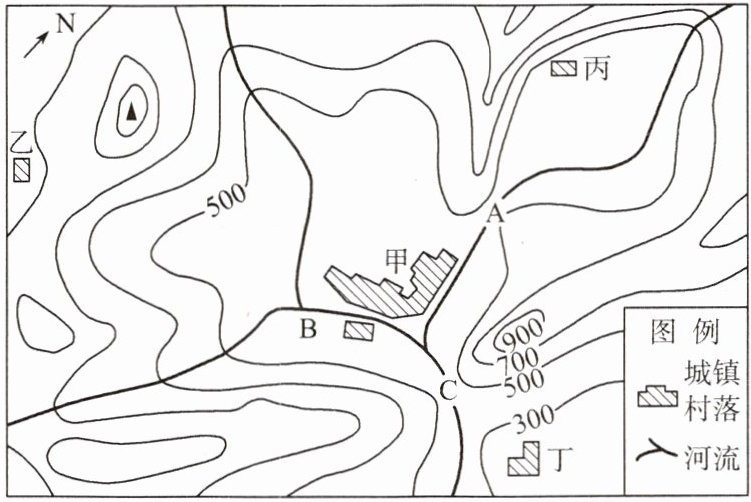 (4)与其他三村镇相比,甲村镇形成的有利条件是什么?