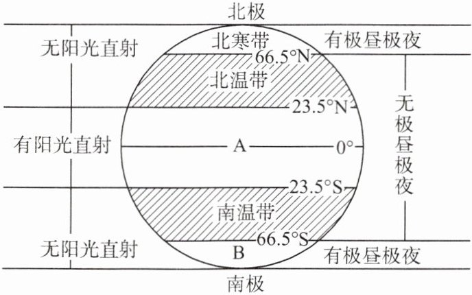 (1)热带 南寒带 (2)北寒带 南寒带(3)北温带 (4)回归线 极圈