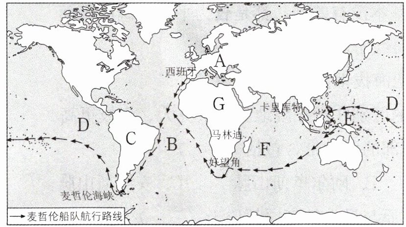 (2)1519年9月,在麦哲伦的带领下,200多名探险队员分乘五艘船,从A