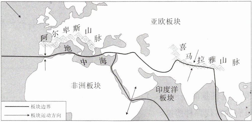 的趋势,其原因是 地中海位于亚欧板块与非洲板块的碰撞挤压处