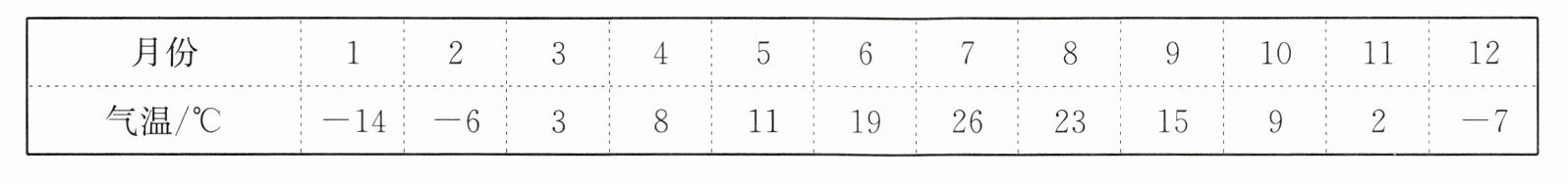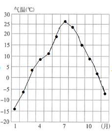 (2) 此地一年中最高气温出现在______月,最低气温出现在______月。