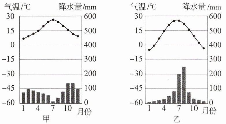 D. 甲地降水量季节变化比乙地小