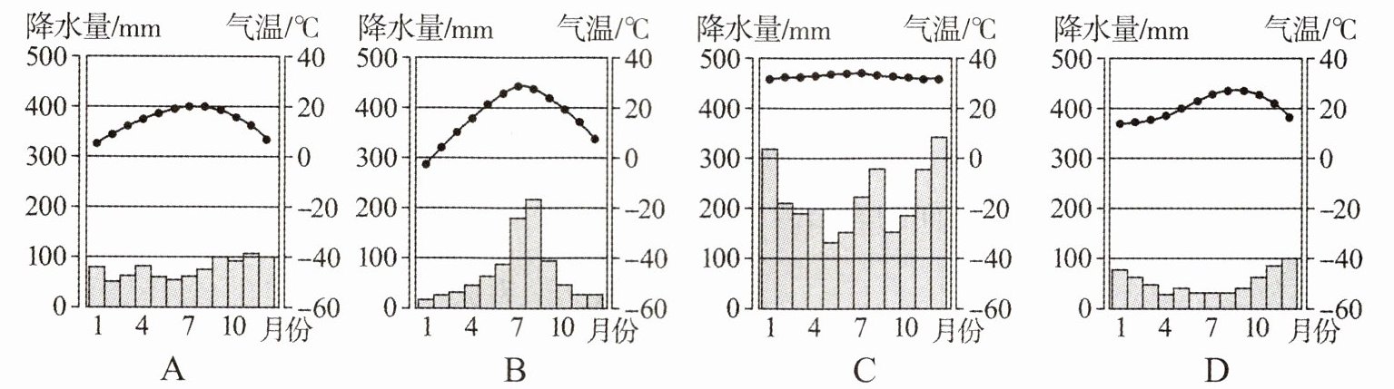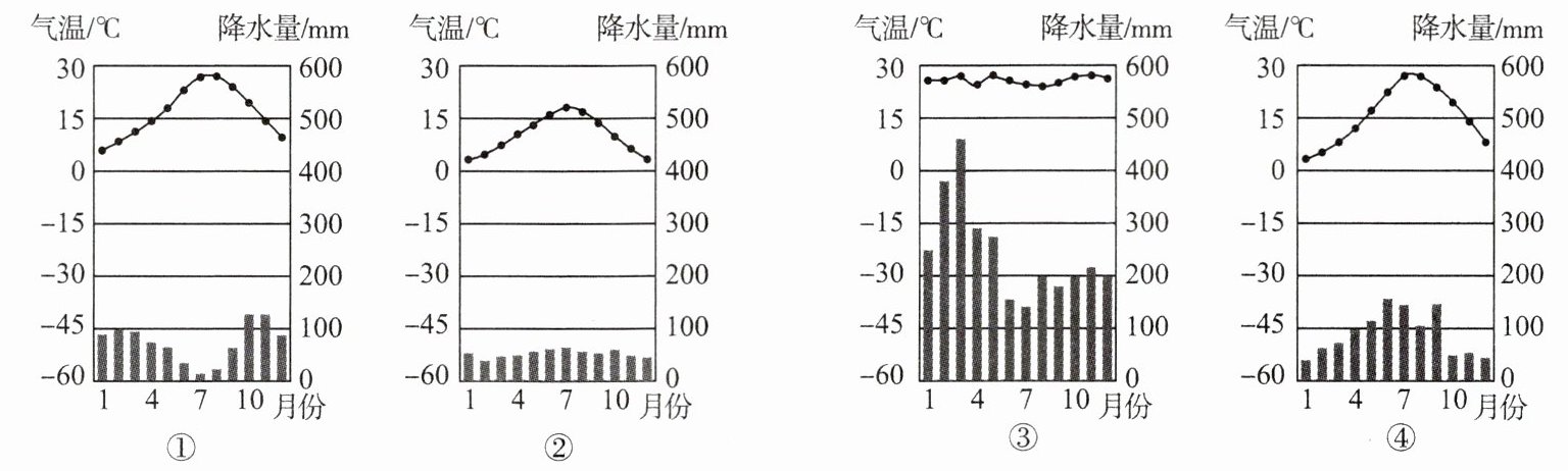 (3)乙家乡的气候类型可以用下列四幅图中的哪一幅来表示?______。