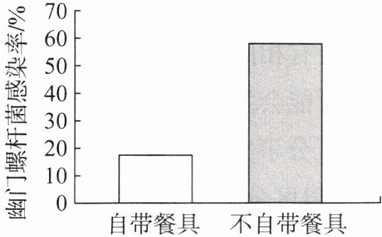 6. 某科研团队对幽门螺杆菌的传播途径进行了研究,结果如图所示。据此推测,幽门螺杆菌可通过(