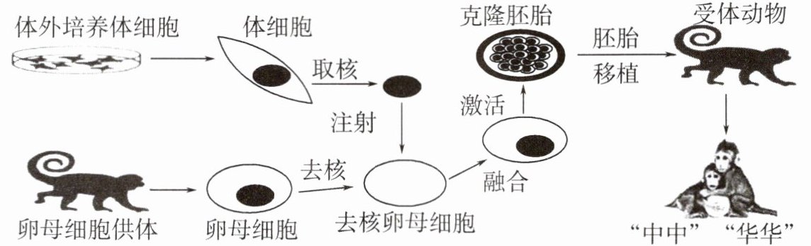 9. 2018 年,中国科学院神经科学研究所的科研团队首次成功获得了两只体细胞克隆猴,取名“中中”和“华华”(如图所示)。下列叙述不正确的是( )