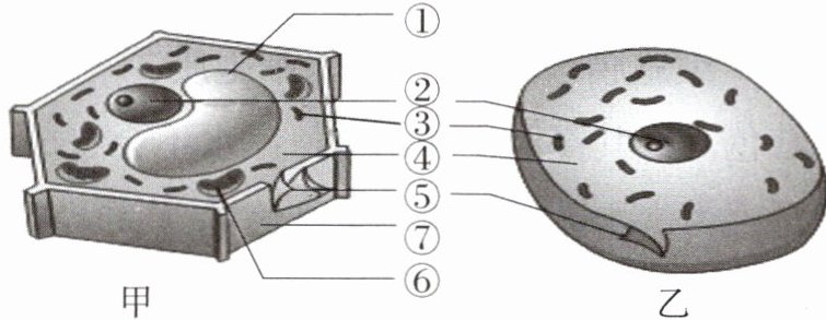 D.⑦位于甲细胞的最外层,能控制物质进出