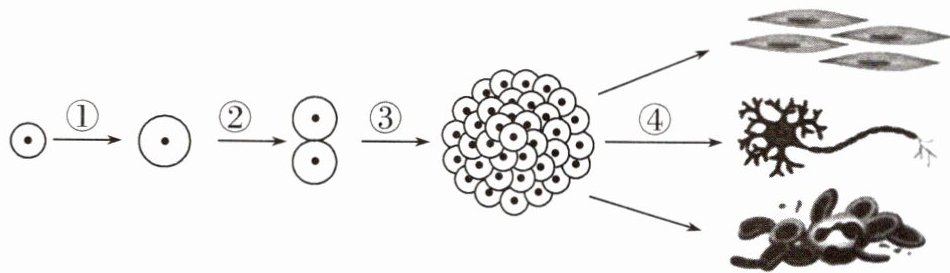 5. 生物体由小长大,是与细胞的生长、分裂和分化分不开的。如图表示与动物体由小长大有关的部分过程。相关表述正确的是(