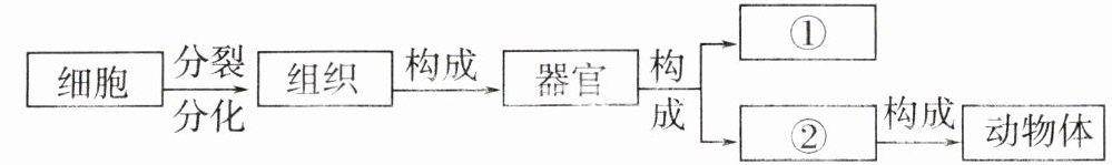 。(3)植物体与动物体的结构层次可用下面的概念图表示。填写图中序号①②相应的内容:①