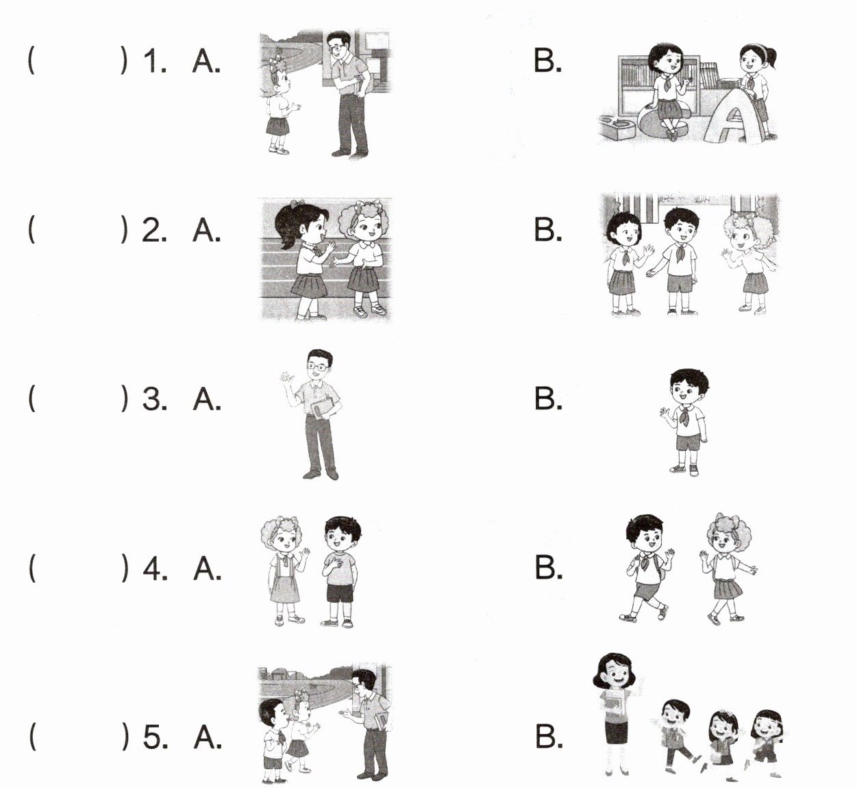 Ⅱ. Listen and choose.(随着更多的接触,大家之间更喜欢交流了。听录音,选出与场景相符的选项。)