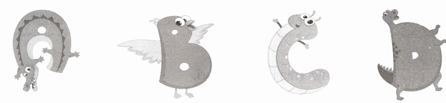 Ⅴ. Think and write.(老师又展示了一些卡通图片。它们像哪些大写英文字母?请写出来。)