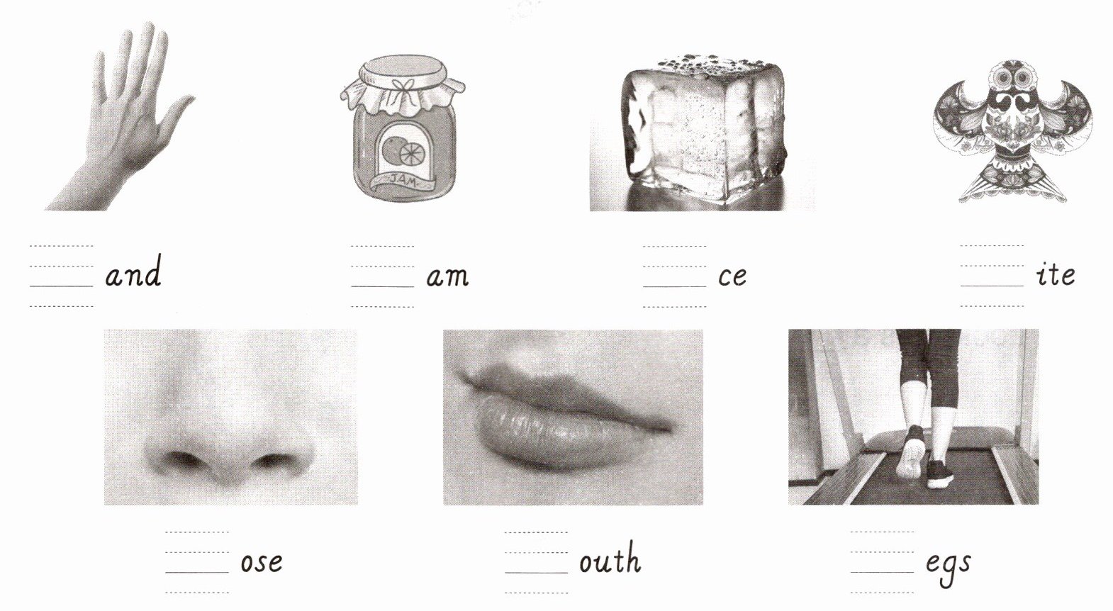 Ⅳ. Look and write.(张老师在整理词卡的时候,发现有些单词的首字母缺失了,请你写一写,帮她将单词补充完整。)