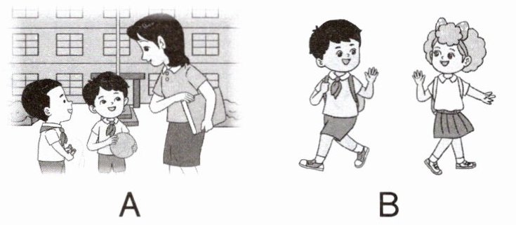 Ⅲ. Listen and choose.(学校广播里传来了老师和同学向大家问好的声音。听录音,选出听到的句子。)