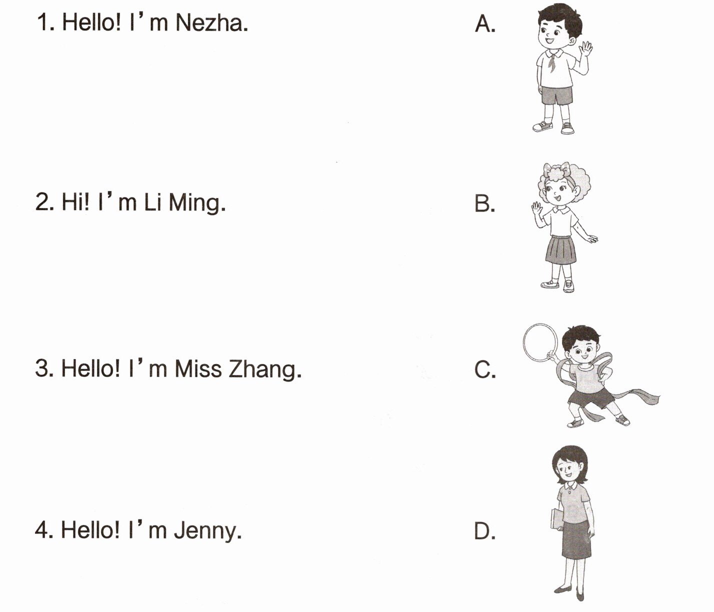 Ⅴ. Read and match.(老师和同学们见鲁鲁这么好学,纷纷向他示范自我介绍。读一读,连线。)