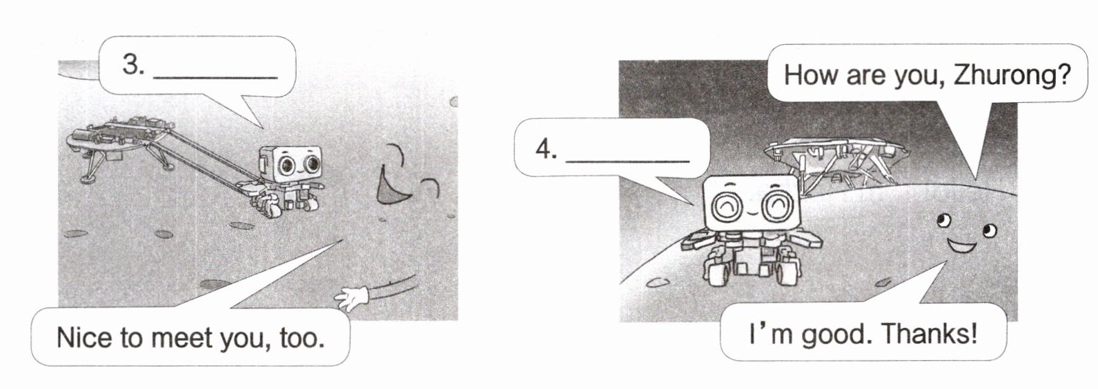 Ⅵ. Look, read and choose.(李明和鲁鲁走进学校观影厅,观看了祝融号的纪录片。看图,读一读,选择正确的选项。)