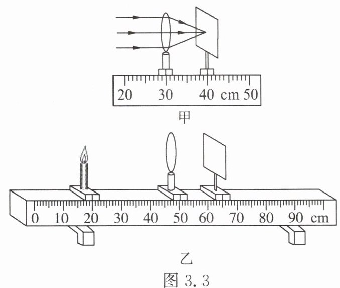 6. 在做“探究凸透镜成像的规律”实验中,某小组同学利用图 3.3 甲测出了透镜的焦距后,正确安装并调节实验装置如图乙所示,在光屏上得到一个清晰的像。下列说法正确的是(