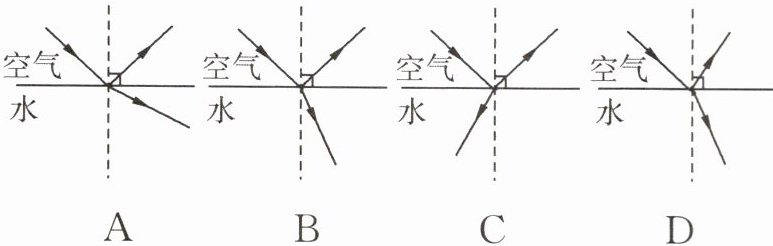 10. 如图所示的光路图中,能正确表示光从空气射入水中时发生的反射和折射现象是(