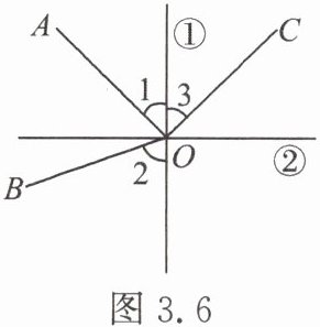 (选填“不一定”或“一定”)发生偏折。光在空气和水的分界面处同时发生反射和折射的光路如图 3.6 所示,其中折射角为∠2