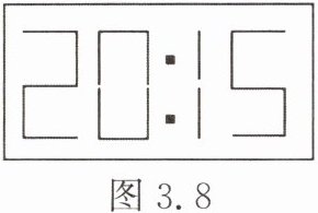 (选填“大于”“等于”或“小于”) $1.73\ m$;若他从镜子里看到电子钟示数如图 3.8 所示,则这时的实际时间是21:05