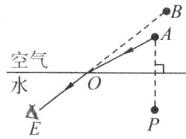 (2)小明在水下 $E$ 处看到路灯的光路图。