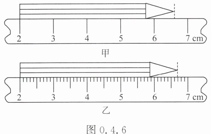 2. 如图0.4.6所示,刻度尺甲、乙分别测量同一物体的长度,其中甲尺的分度值是