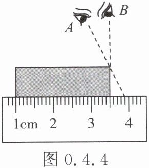 5. 如图0.4.4所示,某同学用刻度尺测量一块橡皮的长度,所用刻度尺的分度值是
