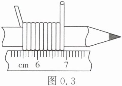 ②用刻度尺测出圆铅笔杆上铜丝绕圈总长度 $L_{2}$(图 $0.3$)