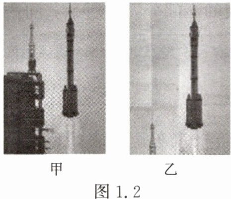 10. “朱雀二号”运载火箭在我国酒泉卫星发射中心发射升空时的场景如图 1.2 所示。该运载火箭箭体长约 60 m,小明分别截取了火箭发射前后相隔 10 s 的两幅图像甲、乙,由此可推断出火箭的平均速度最接近(