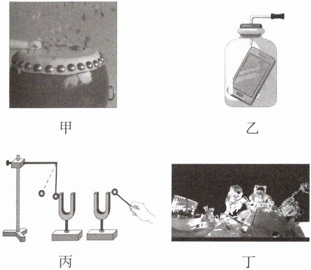 B.图乙,放在真空罩里的手机,当有来电时,只见指示灯闪烁,听不见铃声