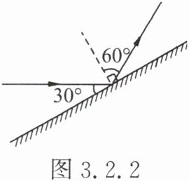 例2 如图3.2.1所示,入射光线与镜面成30°角,请画出反射光线并标出反射角及度数。