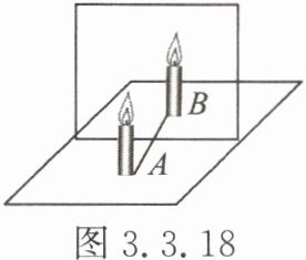 13. 小明同学在做“探究平面镜成像特点”的实验时,玻璃板前放置点燃的蜡烛 A,烛焰高 2 cm,玻璃板的后面出现蜡烛的像,再取一只未点燃的同样的蜡烛 B 放在像处,如图 3.3.18 所示。