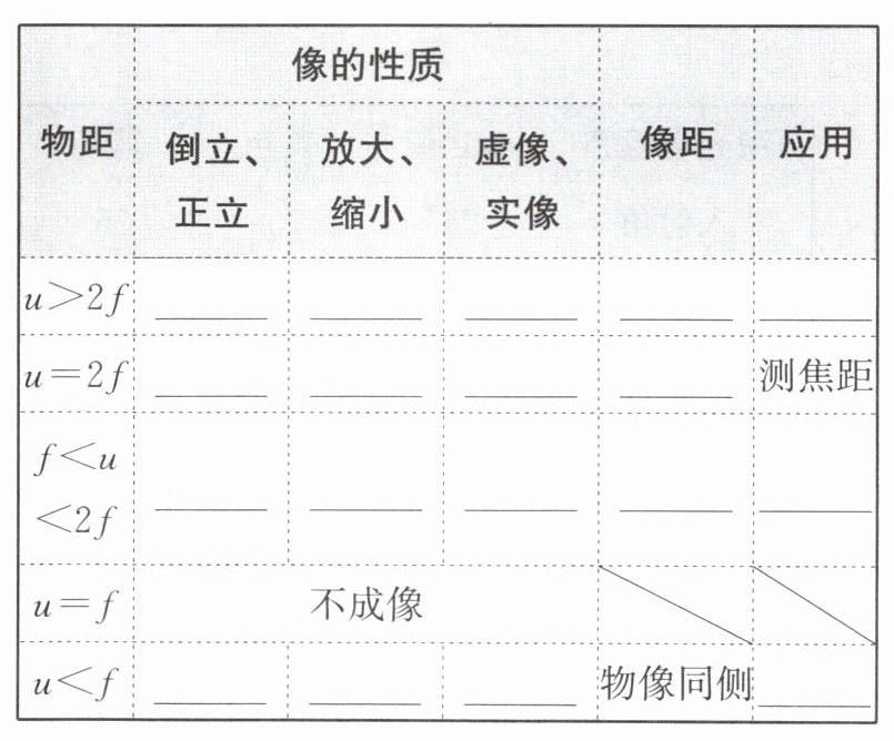 |$u= 2f$|倒立|等大|实像|$v=2f$|测焦距|