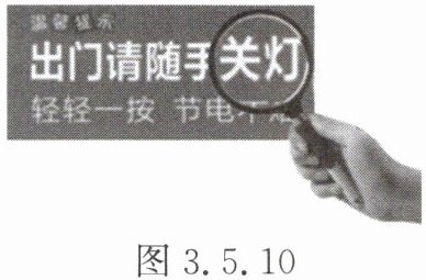1. 小明通过焦距为 10cm 的凸透镜看到了提示牌上“关灯”两字放大的像,如图 3.5.10 所示。下列说法正确的是(