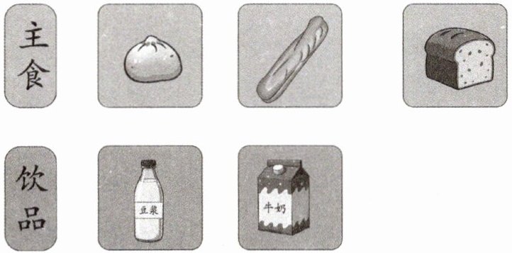 主食有$3$种选择(面包、油条、包子),饮品有$2$种选择(豆浆、牛奶)。