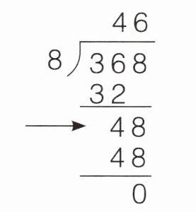 (2) 箭头所指的48表示368本书分掉320本书后剩余的结果,代表剩余需要分掉的48本课外书(这里的6在个位上,表示6,$8× 6=48$)。