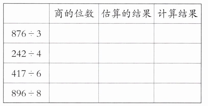 |商的位数|估算的结果|计算结果|